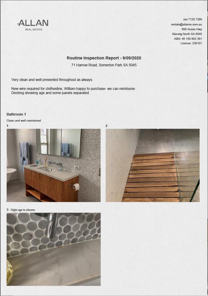 Routine inspections are carried out 3 times per year. A detailed report of condition and repairs, including photos, is supplied at each routine inspection keeping you completely up to date.