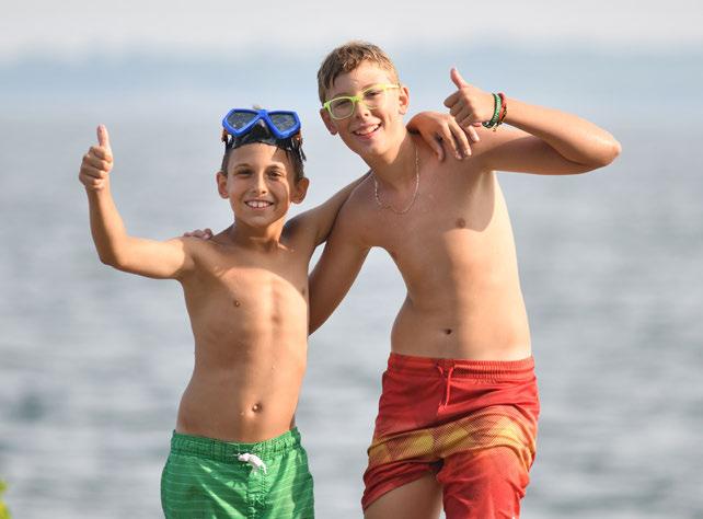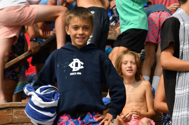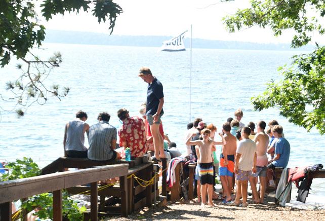 Many of you know Jess best from her role at Swim Point. Morning dips. Swim meets. Swim parties. Lessons. Water polo. Choice time. Extravaganzas. Evening dips. Swim Point is one of the busiest areas of Camp, with something seemingly happening almost every waking minute of the day, and Jess is there for all of it. She is the steady, tireless presence that makes it all run. She trains and manages her team thoughtfully, with diligence and care, while ensuring that every camper, leader, and sta! member feels safe and encouraged in the water, and more broadly at Camp.