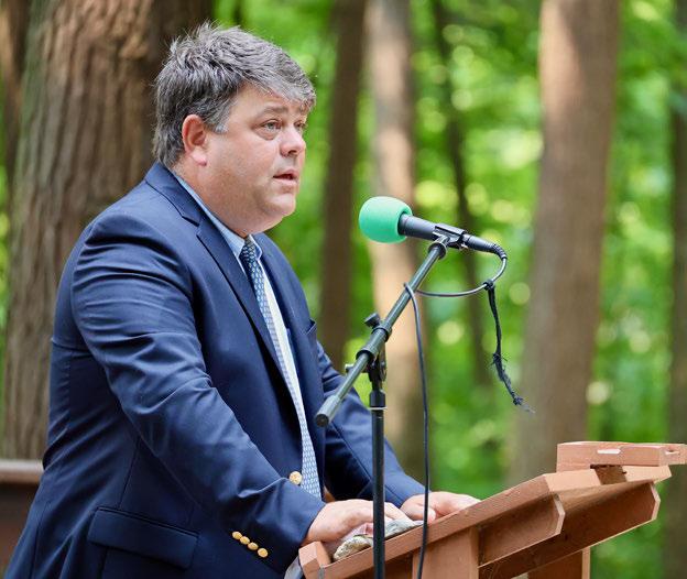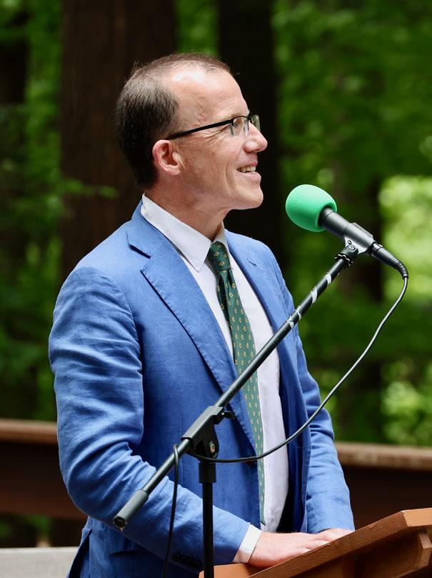 August 16, 2025 • Awarded at the end of every summer, the Last Whistle Dedication is one of the highest honors one can receive at Camp Dudley. It is presented to a member of our community who shows devotion and love toward others and this place we all cherish while living with an unwavering commitment to our motto: “The Other Fellow First.” It is a tradition that honors someone who has given themselves fully to Camp Dudley — and to all of us who call this place home. And tonight, I’d like to begin this dedication by talking about one of our four core values: stewardship.
