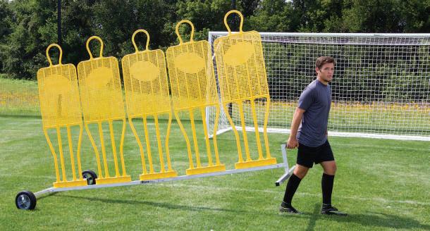 Swivel wheels are removed when goal is in use or in storage