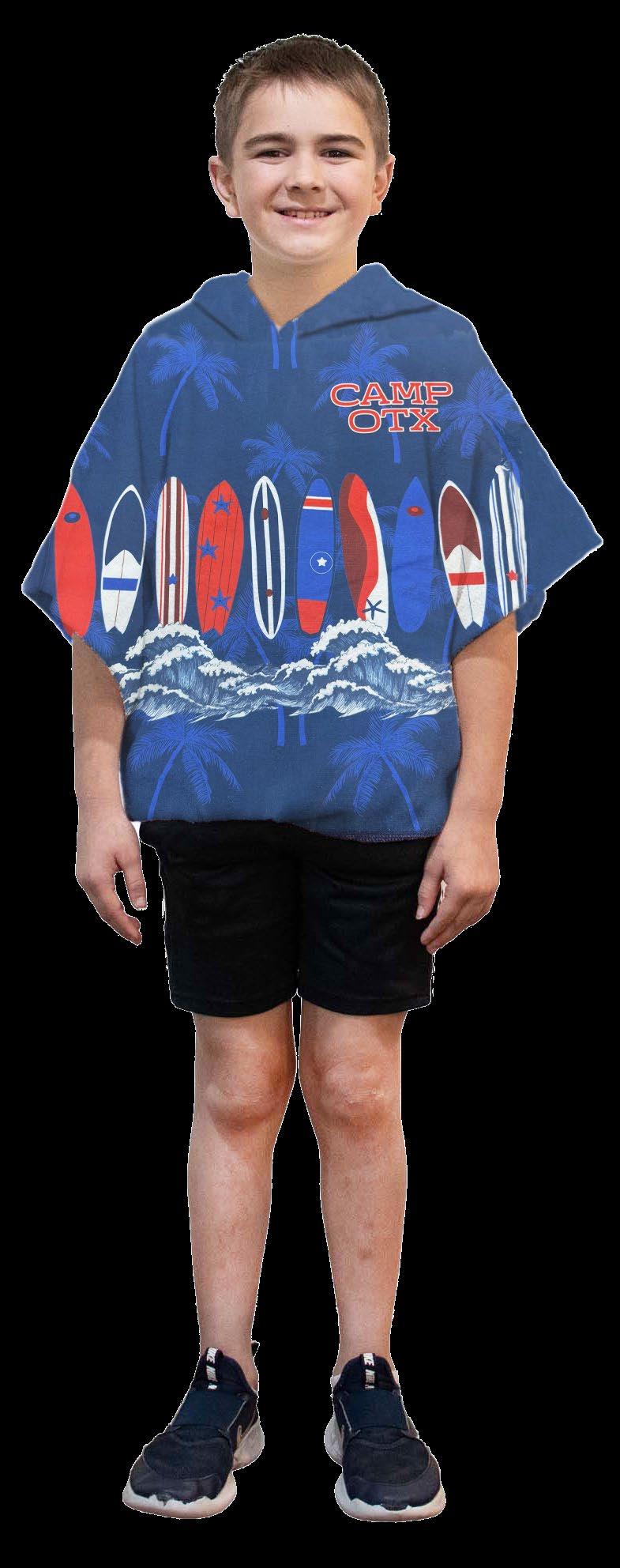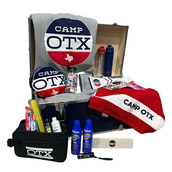 Items needed for the Camp OTX experience labeled and waiting when your camper gets to camp! Premium Whole Enchilada includes: linens, pillow, towels, Camp OTX sweatshirt blanket, 14 Camp OTX shirts (includes 2026 Special Event shirts), 14 basic Camp OTX shorts, fan, bathhouse kit, poncho, flashlight, writing supplies and stamps, laundry bag, Bible, and water bottle, all in a custom Camp OTX trunk.