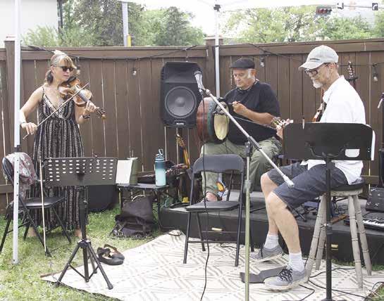 • City Center Camrose completed its Rosemaling Project, as artist Catherine Bray installed the last panels on the planter outside of the Barwain store. Timing of the event was fortunate as judges for the communities in bloom competition were in town. City Center Camrose manager, Daryl Shillington and member Paul Pedersen escorted judges Brenden Casement and Danielle Deland around downtown to see the completed rosemaling.