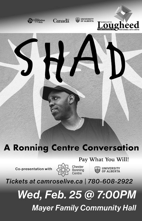 Local musical educators and jazz trio Steven Hartman, Erik Olson and Marshall Tindall, all multi-instrumentalists and each a member of the Battle River Big Band, will be entertaining guests with beloved tunes at the 6:00 p.m. Cocktail Hour on Friday, February 13, to officially open 2026 Nordlys Film & Arts Festival. Planning of this year’s Nordlys Film & Arts Festival started the day after last year’s Family Day weekend presentation concluded at the Bailey Theatre. Now, 51 weeks later, Nordlys is back for another year! The volunteer board and committee members have worked hard to secure awardwinning films from around the world, bring in guest filmmakers, artists and musicians and, for the first time, will be presenting a two-person stage play on Opening Night. The festival is anticipating a sell-out crowd February 13 to 15, but rush seating will be sold on a first-come first-served basis. This year, even the lights on the Main Street Camrose trees are prominently featuring green and purple lights for almost three weeks in February recognizing the community impact of Nordlys, and as a tribute effort to replicate the allure and dazzling colour of northern lights. Nordlys is a Norwegian term that directly translates to "Northern Lights" in English.