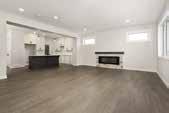 The main floor features an open layout with nine-foot ceilings, vinyl plank flooring and extra windows that fill the space with natural light. The living room flows into a spacious dining area and a kitchen that features quartz countertops, a large island with eating bar, modern shaker-style cabinetry and a 5.6’ by 5.6’ walk-in pantry. A rear entry includes a two-piece bathroom and access to a large deck and backyard area.