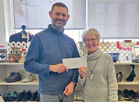 The Camrose & District Family Thrift Shop supports non-profit organizations and special personal needs with each request recognized on its own merits. From left, Landon Lewsaw, grade 6 teacher from Hay Lakes, received a $1,400 cheque for the BRSD Celebration of Bands from Joanne Olsen, Family Thrift Shop board secretary.