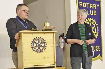 From left, manager of engineering services for the City of Camrose Jeremy Enarson and Rotarian Shirley Bergsma. Enarson made a presentation to the Camrose Rotary Club about the water systems of Camrose and the plans that are underway to ensure the City has access to sustainable and healthy water in the long run.