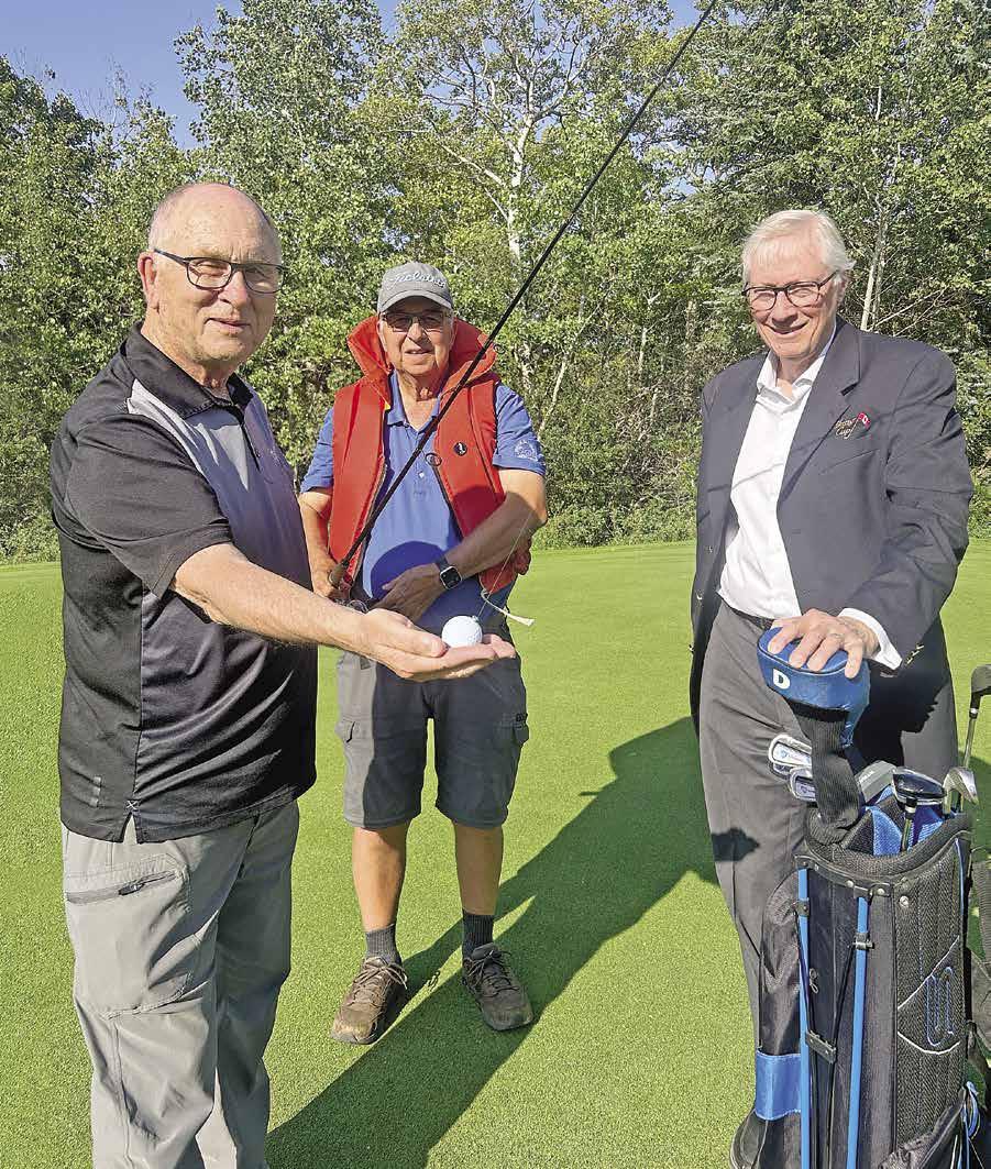 Below: Dedicated to the work of Dream Casters membership, Bill Schulte (centre), LeRoy Johnson (left) and Verlyn Olson, both high-profile Viking Alumni members, are hoping for an impressive turnout and plenty of fine memories to be made at this weekend’s golf fundraiser in Camrose.