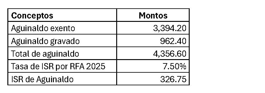 La retención conforme a la Resolución de Facilidades Administrativas para 2025, se realiza por los pagos efectivamente realizados y no sobre una base gravable, por lo que la tasa se aplica al total pagado por aguinaldo.