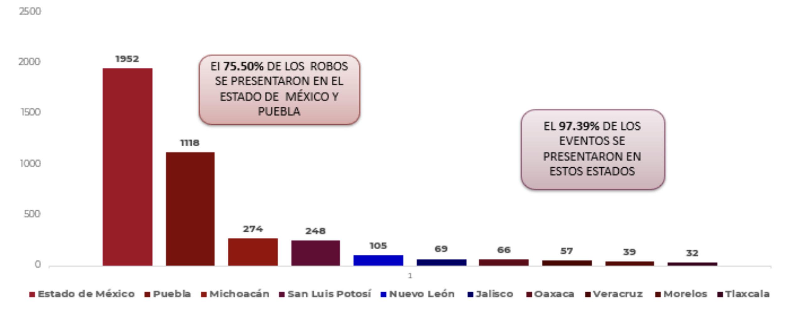 • El 92.73% de los eventos se denunciaron en estos 10 Estados.