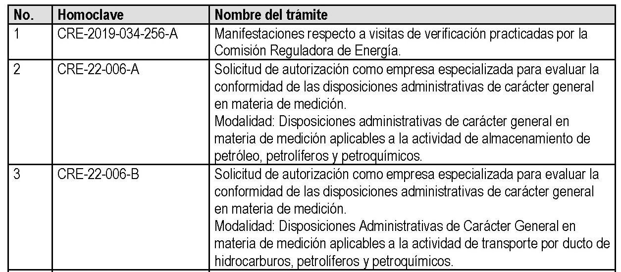 • La Comisión Nacional de Energía debe actualizar la información de los trámites y servicios enunciados en este Acuerdo en el Portal Ciudadano Único de Trámites y Servicios, de conformidad con los artículos 53 y 54 de la Ley Nacional para Eliminar Trámites Burocráticos.