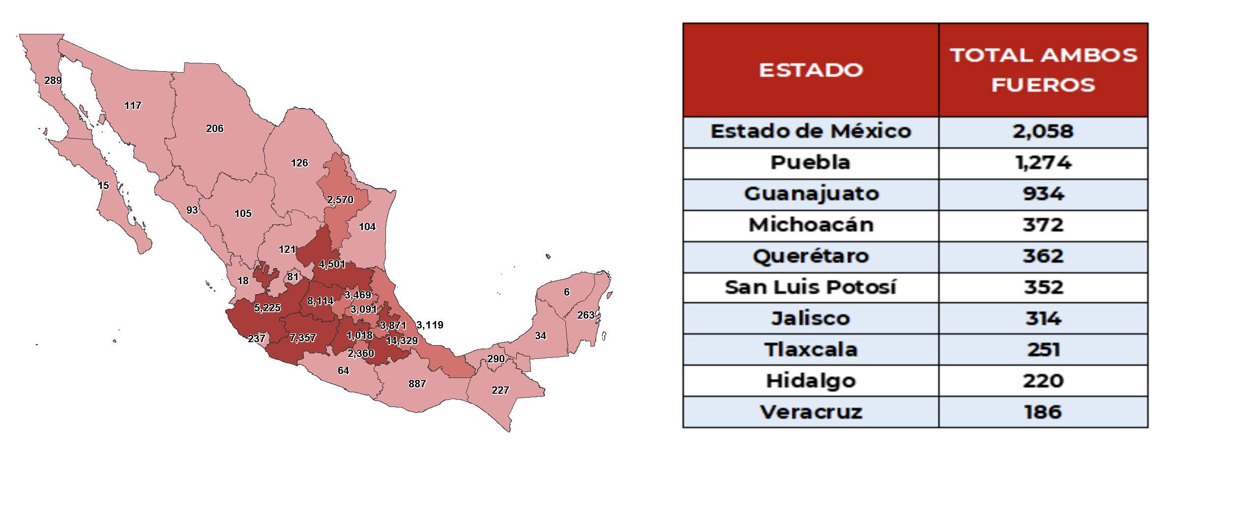 ESTADOS DE MAYOR INCIDENCIA FUERO FEDERAL AGOSTO 2025