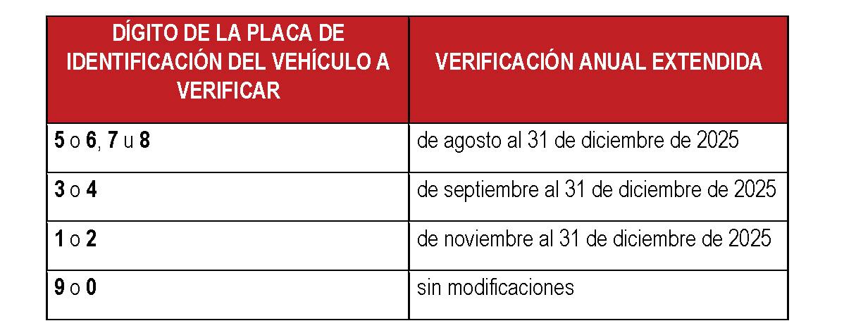 • PRÓRROGA PARA LA VERIFICACIÓN DE EMISIONES CONTAMINANTES