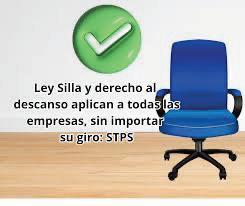La Secretaría del Trabajo y Previsión Social (STPS) informa que a partir del 15 de diciembre de 2025 entraron en vigor las últimas disposiciones de la llamada Ley Silla, derivadas del Decreto publicado el 19 de diciembre de 2024 y de las Disposiciones sobre los factores de riesgos de trabajo para garantizar el derecho al descanso durante la jornada laboral de las personas trabajadoras en bipedestación, publicadas el 17 de junio de 2025.