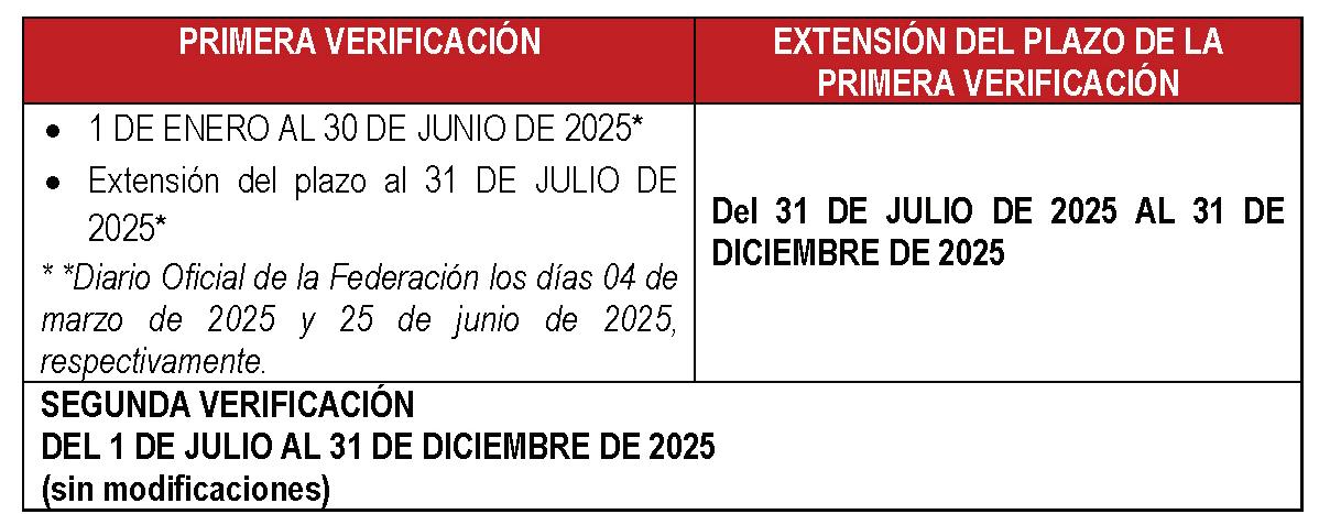 En consecuencia, se otorga una extensión del primer periodo de verificación, para quedar del 31 de julio de 2025 al 31 de diciembre de 2025