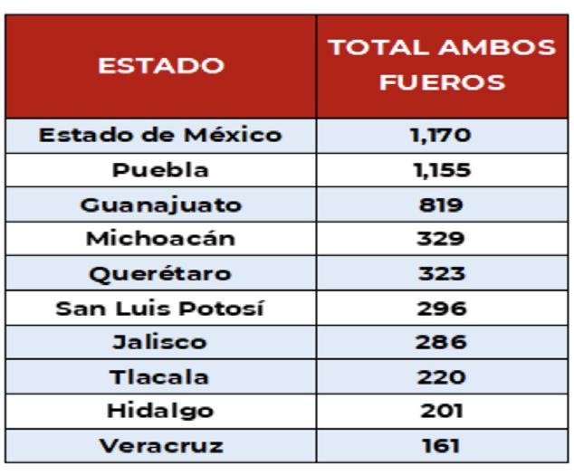 ESTADOS DE MAYOR INCIDENCIA FUERO FEDERAL JUNIO 2025