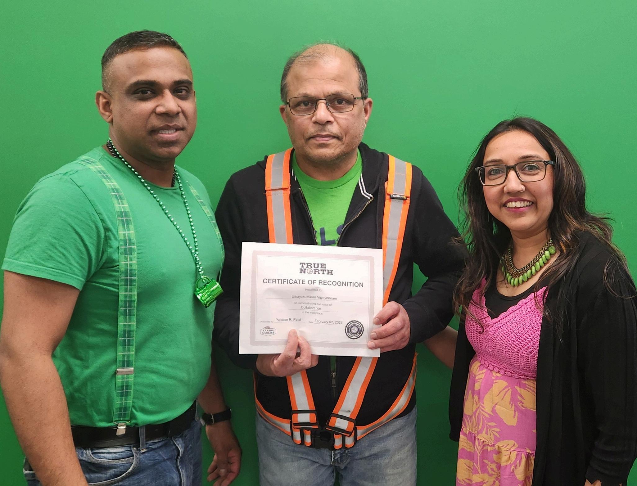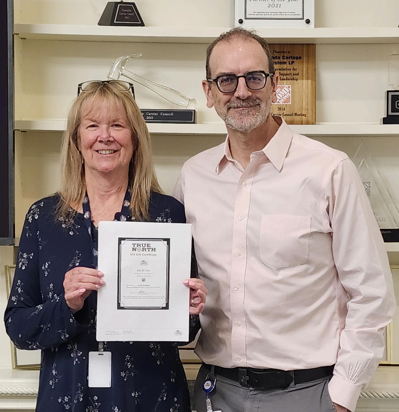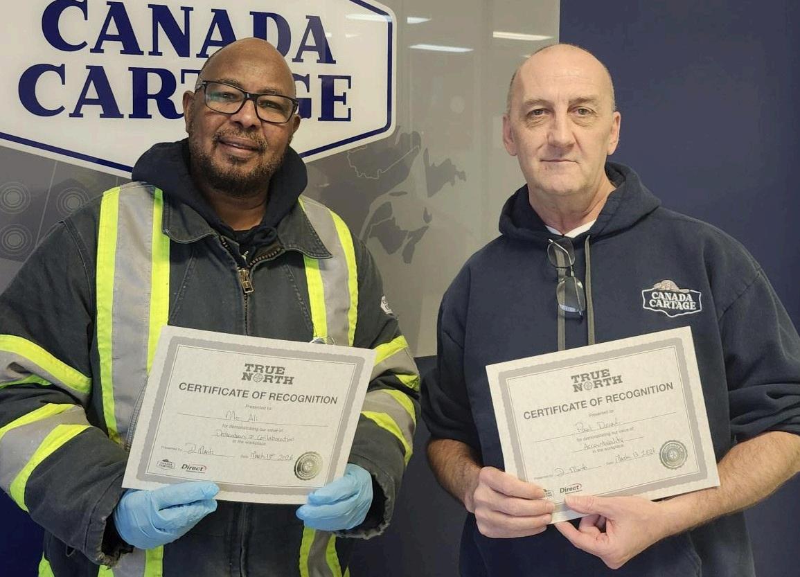 When you see a team member doing great work, let them know by sending them a thank you card or certificate. Each quarter, a team in each region reviews all submissions and recognizes those who have gone "Above and Beyond" to receive a $50.00 gift certificate. Each winner is also eligible for the President's Award in January. You can email your recognition, along with the reason why you nominated the recipient and the values they demonstrated, to recognition@canadacartage com, or online at www canadacartage com/truenorth