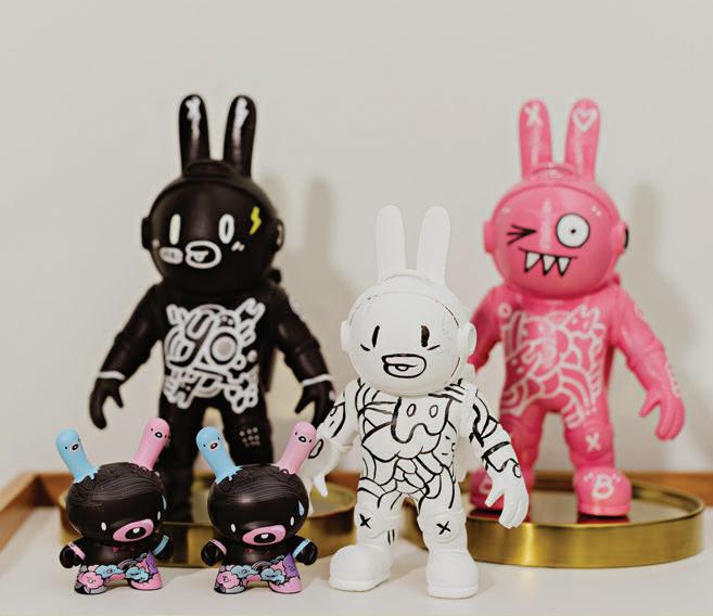 Ting’s advertising days are behind him, too—he’s now a fulltime artist and designer creating bright, playful illustrations that embrace both fine detail and abundant movement. You’ve likely seen Chairman Ting art around the city (a panorama dressing up the former Nordstrom space, custom badges for Christine Sinclair’s retirement celebration, intricate murals in the Nicola Wealth and BCAA offices), and the walls of his family home serve as a personal gallery of curated favourites. How does he pick which works to display? “It’s usually up to her,” Ting answers, nodding to his wife, Denise. After all, he credits her for many of his wins— she tracks down the marketing teams of global brands (ever heard of Adidas?), leading to the collaborations and commissions that have skyrocketed his career.