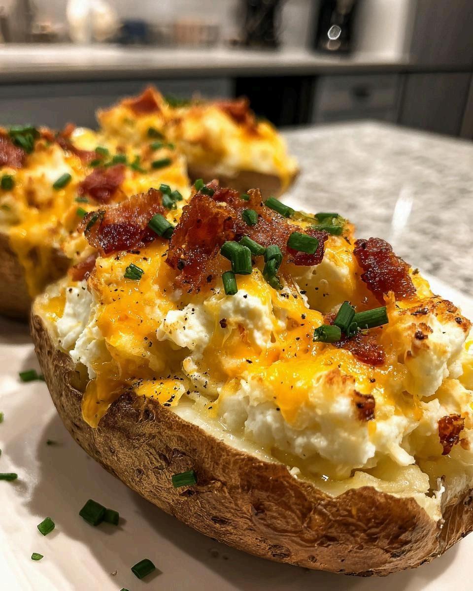 Cut open, fluff with a fork, add toppings.