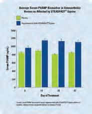 The decrease in serum CTXII and increase in serum PIIANP and osteocalcin suggest slowing of cartilage loss and rebuilding of cartilage and bone tissue in horses fed STEADFAST® Equine.