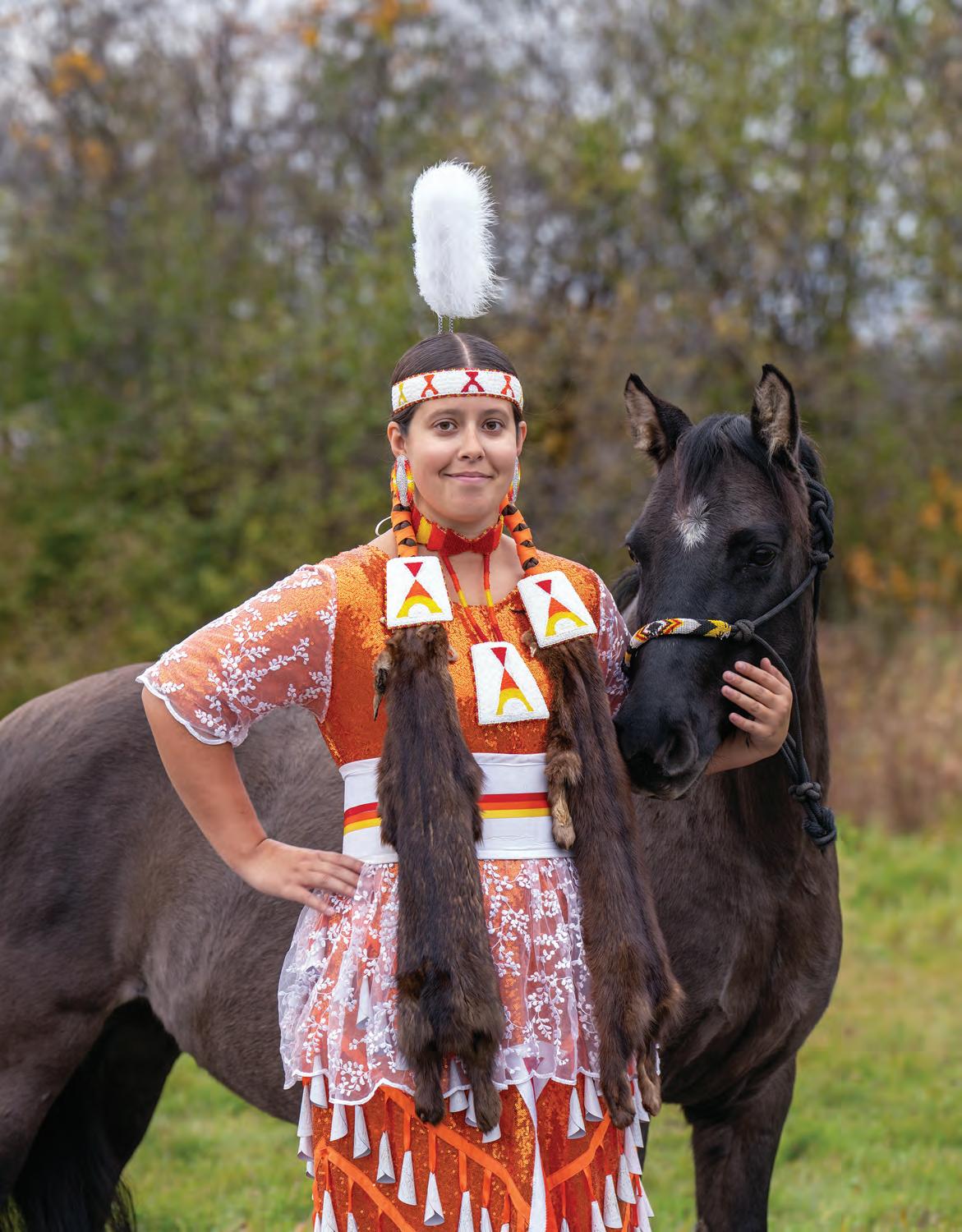 Migzi (Eagle), a four-year-old stallion, is an outstanding example of the Ojibwe breed. These sturdy, resilient horses stand 12 to 14.2 hands high and are known for being gentle and intelligent.