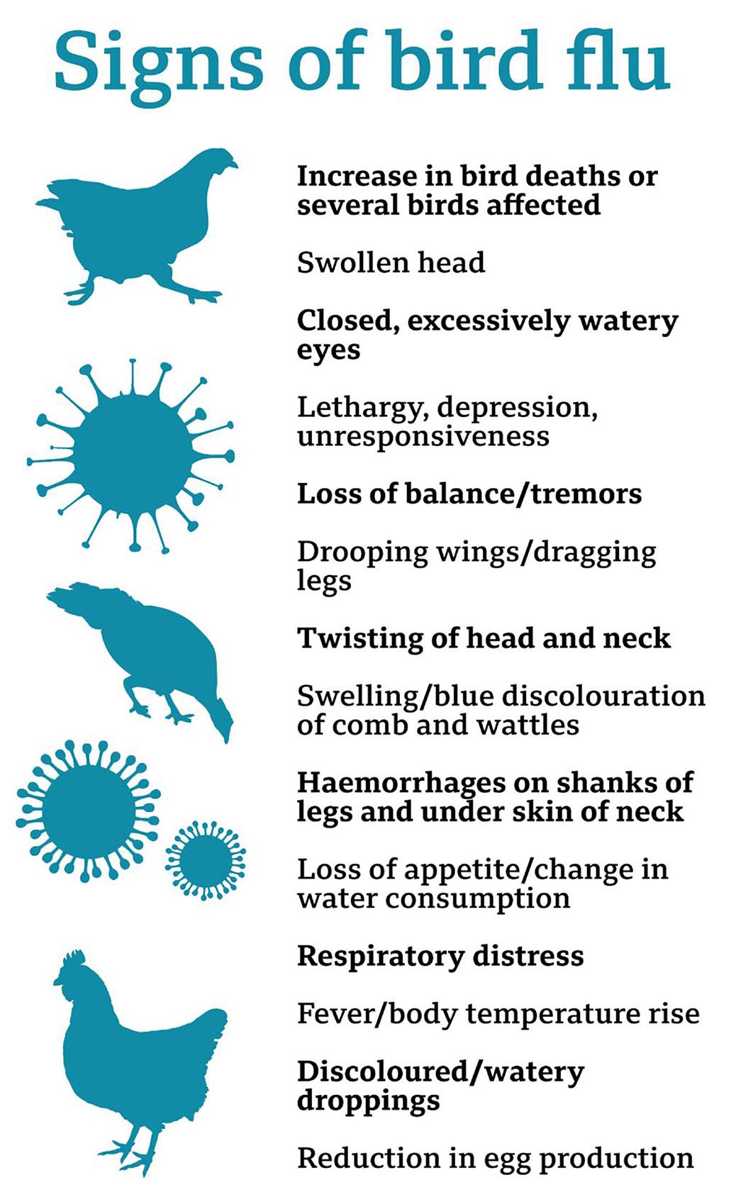 Highly Pathogenic Avian Influenza can be transmitted by wild birds to domestic poultry and other bird and animal species, according to the FDA. Bird flu does not normally infect humans, though sporadic infections in people have occurred.