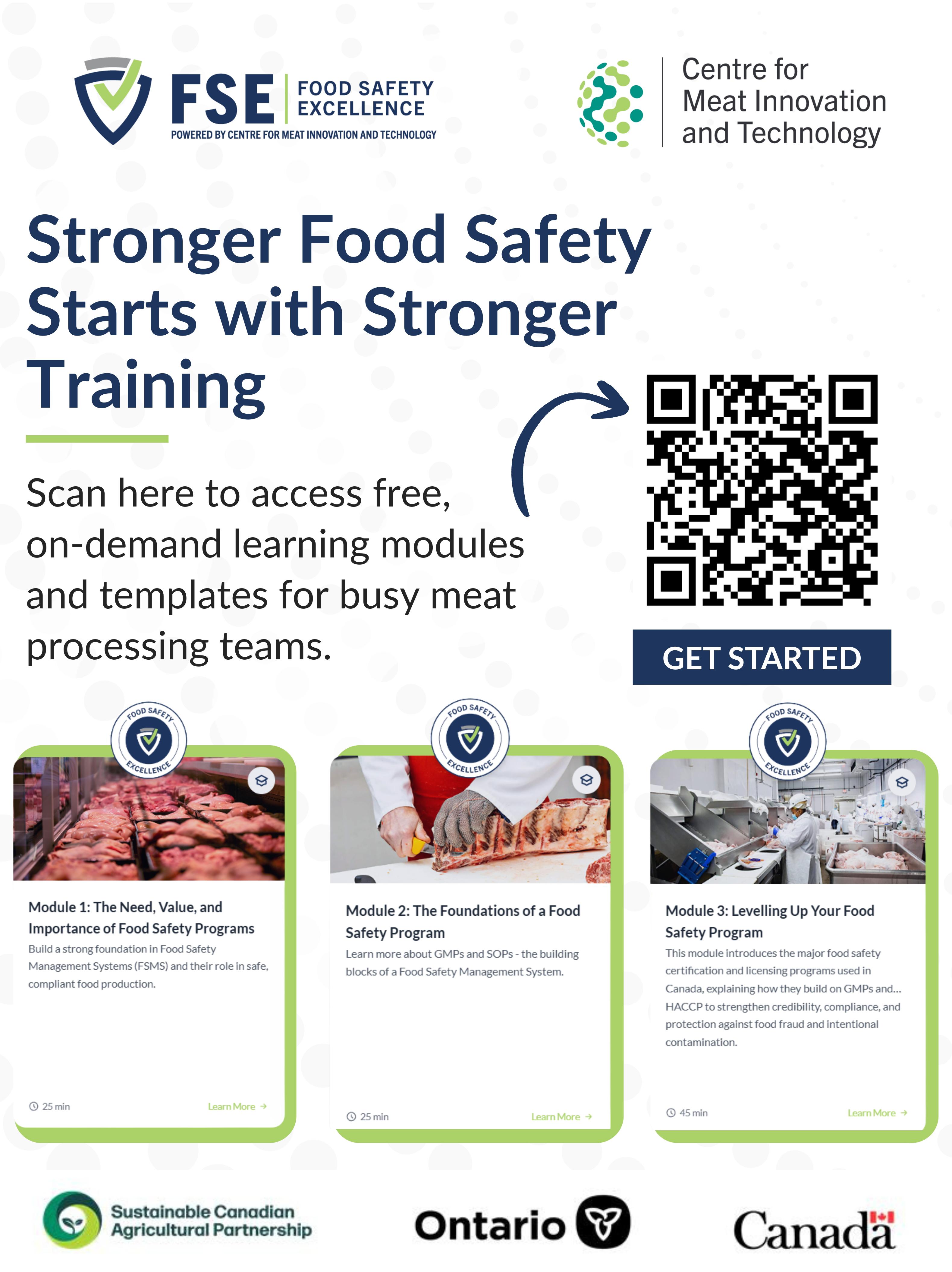 The Food Safety Excellence (FSE) Program, powered by the Centre for Meat and Innovation (CMIT), was designed to help meat processors easily access food safety information, resources, tools and support opportunities and learn more about what certifications they should explore implementing into their operation.