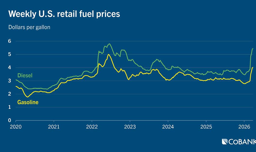 “Higher diesel prices also raise the cost of moving food and goods into rural areas, pushing up local prices and amplifying the economic hit compared with urban areas that have more alternatives and competition,” said Teri Viswanath, lead power, energy and water economist with CoBank. “More broadly, the effects of the closure of the Strait of Hormuz and the stepped-up attacks on energy infrastructure in the Persian Gulf could be longlasting and have probably not been fully priced into U.S. consumer markets.”