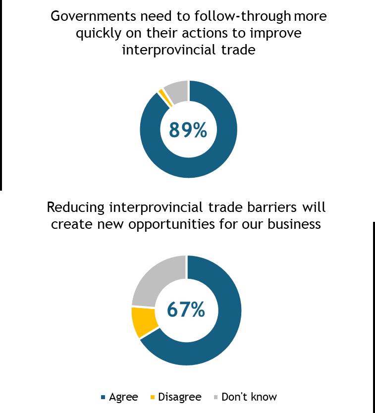 Small Canadian agri-businesses are ready to unlock these benefits: 9 in 10 want governments to act faster in following through on their commitments to improve interprovincial trade. According to data from the Canadian Federation of Independent Business (CFIB), more than half (67%) say that doing so would create new opportunities for their businesses.