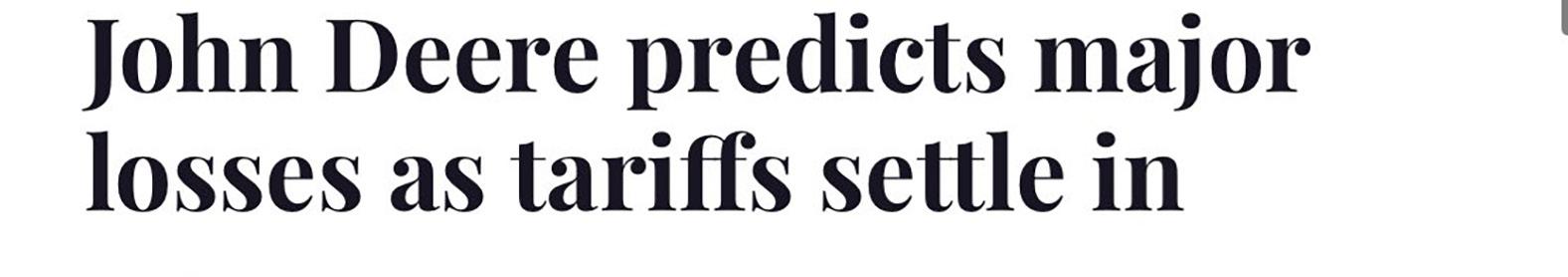 JOHN DEERE WARNS OF MAJOR LOSSES FROM TARIFFS SQUEEZE