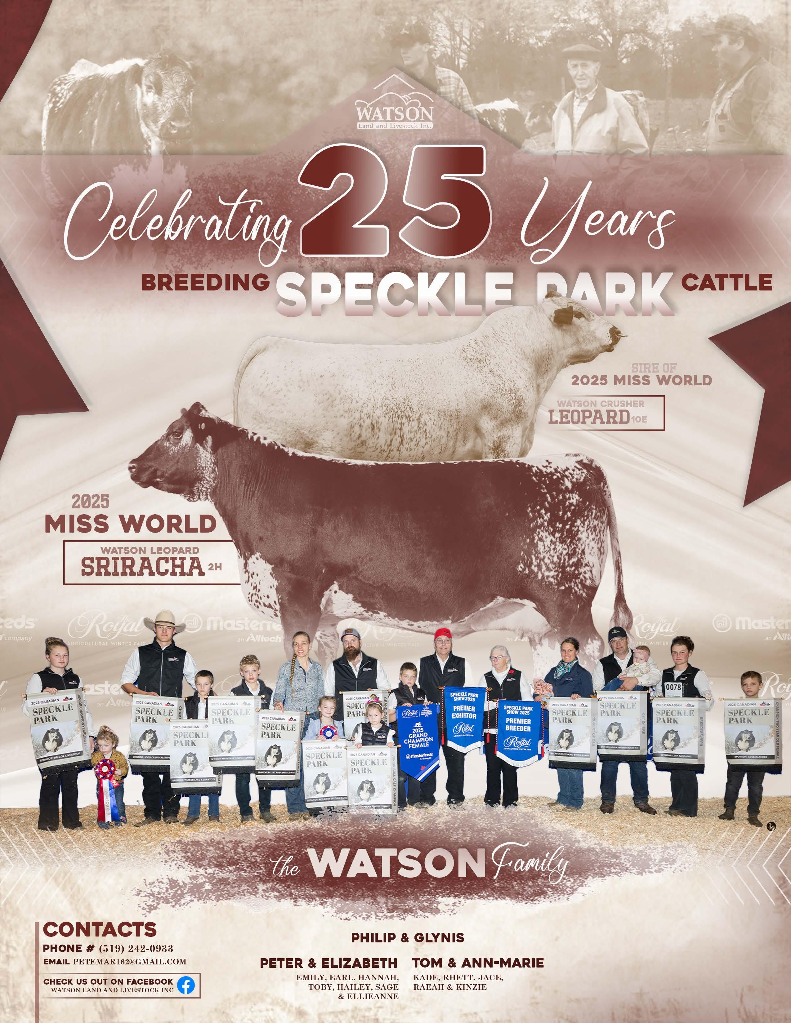 We invite you to join us at the shows this year, take advantage of the opportunities they offer, and help us mark this important milestone in Speckle Park History. Together, let’s continue to showcase the cattle, the people, and the progress that define our breed.