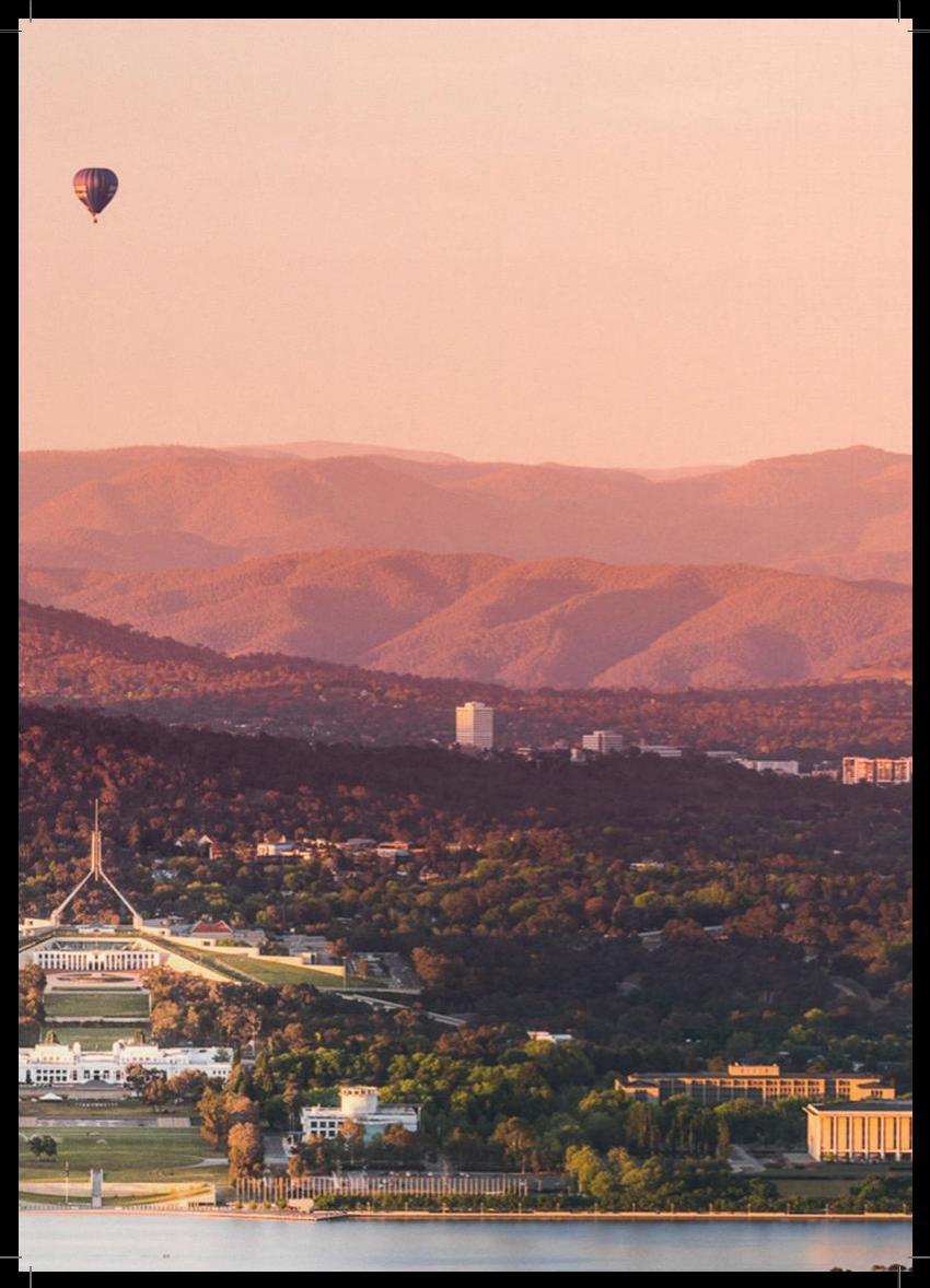 背靠布林达贝拉山脉,周围是自然丛林,堪培拉兼具 都市生活的便利与乡村环境的宁静。它凭借轻松友好 的生活方式、极高的安全系数、亲民的生活成本以及 多元包容的社区氛围,常年跻身于全球最宜居城市之 列。