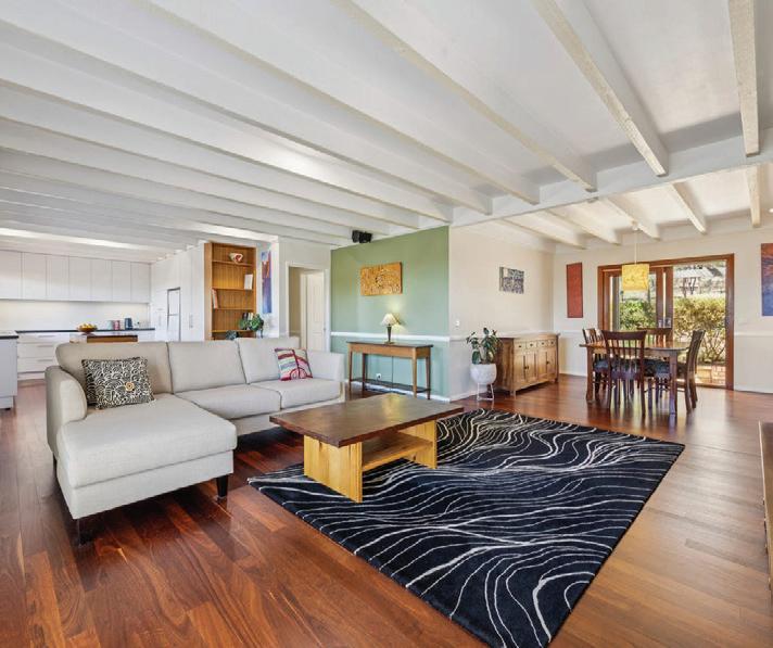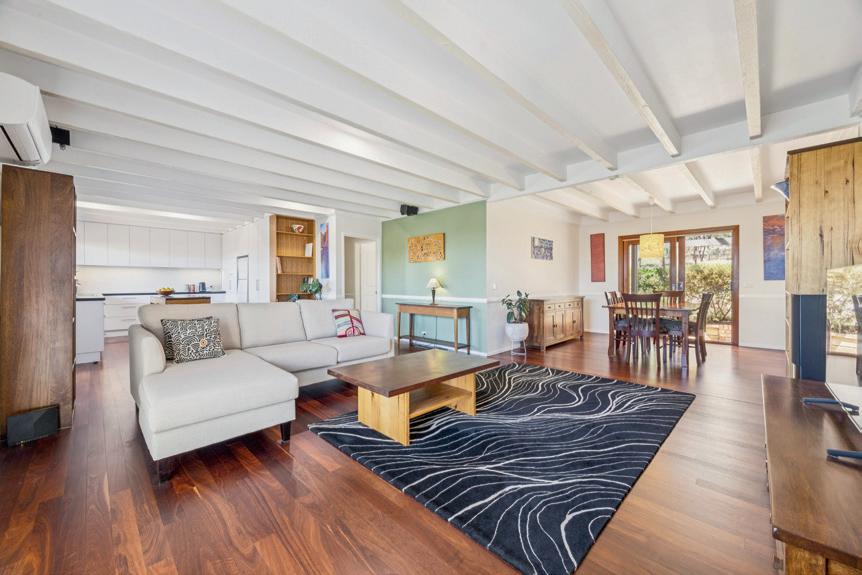 Inside, the home unfolds across a thoughtfully zoned layout, with open plan living, kitchen and dining areas enhanced by exposed beams, jarrah flooring and expansive windows that bring the landscape in. A beautifully renovated kitchen with premium appliances and a servery to the front deck makes entertaining effortless, while two separate living zones provide flexibility for families.