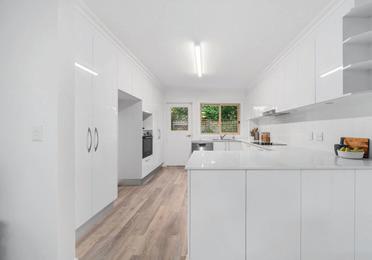 • Modern kitchens with stone benchtops and stainless‑steel appliances