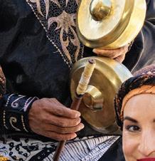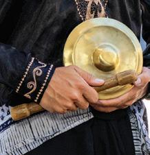 dance using Galembong pants that they supply. There are slow, introductory sessions for those new to informal jamming each morning. Bring your instrument. Buy a new one. Join a workshop. Step into a dance. The line between artists and audience is deliberately blurred.