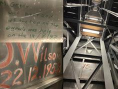 An apprentice plumber called Brian Charles Bourke, who lived in Forrest, inscribed his name on 14 July 1960 and it wasn’t found until the 2020 restoration works to Old Parliament House room, following a severe hailstorm.