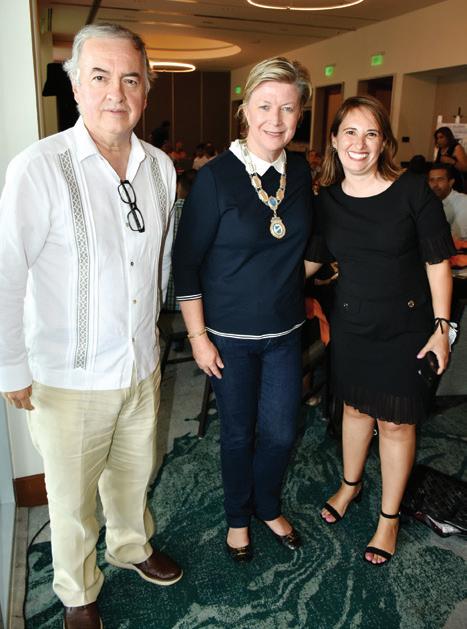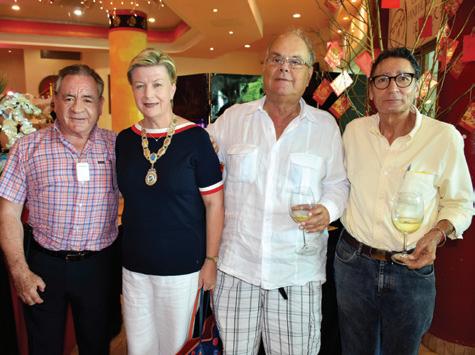 Jane García, presidenta de Skal Inter national Isla Mujeres & Puerto More los, organizó nuevamente la comida mensual del grupo empresarial, mis mo que ahora se reunió en el hotel Re naissance, donde al llegar fueron reci bidos con un coctel que se realizó en la terraza, donde degustaron canapés y diversas bebidas mientras disfruta ban la hermosa vista a la laguna. Más tarde, los comensales se dirigieron al salón donde se sirvió un suculento menú que fue del agrado de los skale gas, mismos que dieron la bienvenida a los invitados especiales y nuevos in tegrantes.