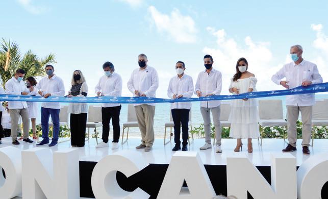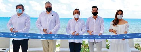 Con 715 habitaciones y suites, dos pis cinas, doce experiencias gastronómicas, splash pool, kids y teens club, entre otras amenidades, la cadena hotelera interna cional Hilton abrió su nuevo centro vaca cional Hilton Cancún, an All-Inclusive Re sort ubicado en la Riviera Maya. Carlos Joaquín González, Gobernador del Esta do de Quintana Roo y Mara Lezama, pre sidenta municipal de Benito Juárez, es tuvieron presentes en el corte del listón, protocolo en el cual se mencionó que la marca Hilton cuenta con más de 6,700 propiedades con más de 1 millón de ha bitaciones en 122 países.