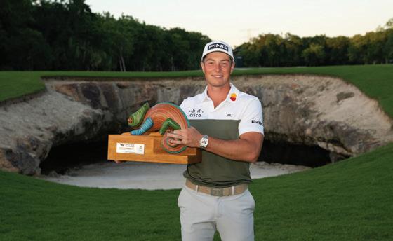EL JUGADOR NORUEGO DE GOLF VIKTOR HOVLAND, obtuvo la victoria en el evento pionero del PGA TOUR en México, el World Wide Technology Championship at Mayakoba, con un total de 261 golpes. Cabe mencionar que, esta fue la tercera victoria en el PGA TOUR de Hovland, por lo que estará dentro del top 10 en el Ranking Mundial Oficial de Golf y además, es el quinto campeón internacional consecutivo en el PGA TOUR.