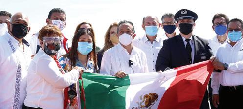 Autoridades municipales y estatales celebraron la llegada en el Aeropuerto Internacional de Cancún al vuelo al vuelo de Aeroflot World en la ruta Moscú, Rusia a Cancún, con la recuperación económica de nuestro Estado, mayor co nectividad aérea desde mercados con potencial de creci miento.