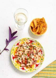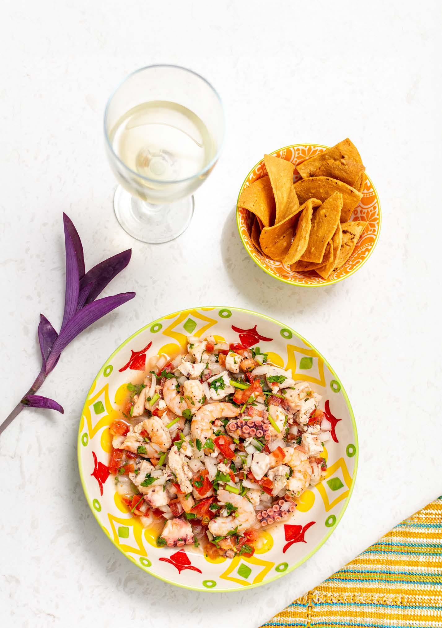 Una mezcla fresquísima de mariscos, tomates y toques verdes le dan a este platillo el nombre de Ceviche del Caribe. La foto es del talentoso Paul Camhi.