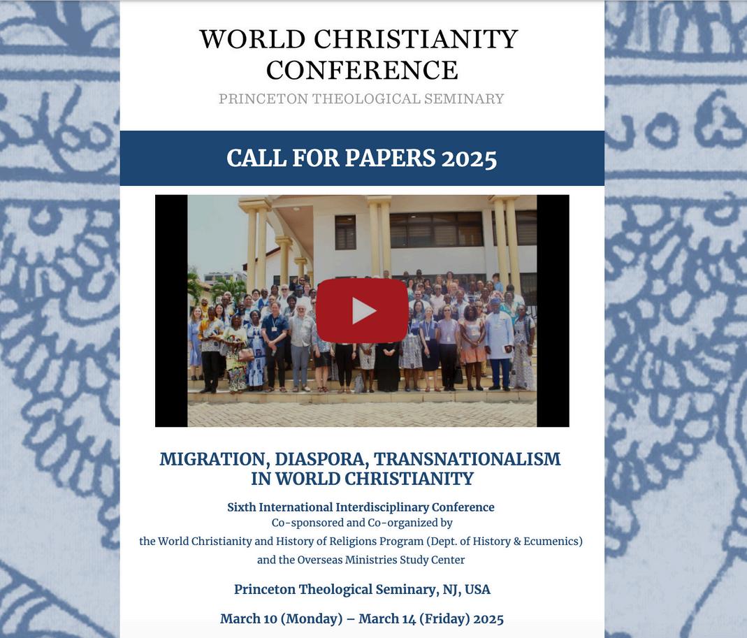 SixthInternationalInterdisciplinaryConference Co-sponsoredandCo-organizedbytheWorldChristianityand HistoryofReligionsProgram(Dept.ofHistory&Ecumenics)andtheOverseasMinistriesStudyCenter