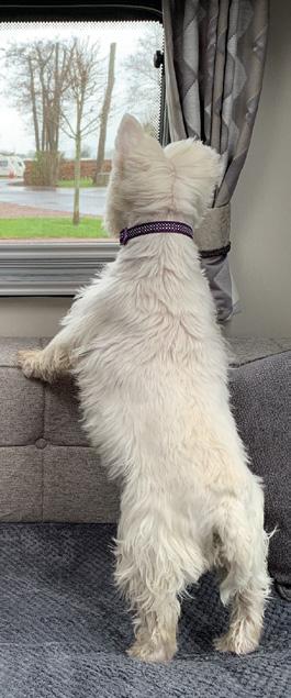 Has it stopped raining? Sian Evans’ Westie, Daisy, kept checking for a change in the weather – hoping that a walk would be imminent – during a stay in Hereford!
