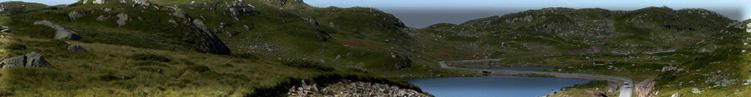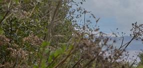 1.9km – Take the path to the right of the gate into the car park and follow through the garden of a holiday cottage. Continue through a gate and into field. Follow the path through a field, climbing steeply to a gate and a stile. Continue through the gate beside the house and past the cottage up a farm track. Go through the gate and left onto a lane.