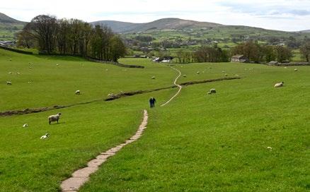 1From main gate of the site, walk along the lane and turn right after 50m. Walk along the road with care for 200m, cross the stone bridge and take the first footpath on the left. Continue across the field, skirting the meander in the river and through a gate. Continue straight ahead towards a barn, but before reaching it, head right through a gate in the drystone wall and diagonally across the field to the next gate to join the Pennine Way.
