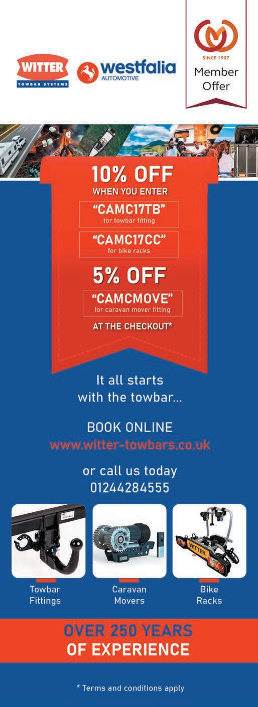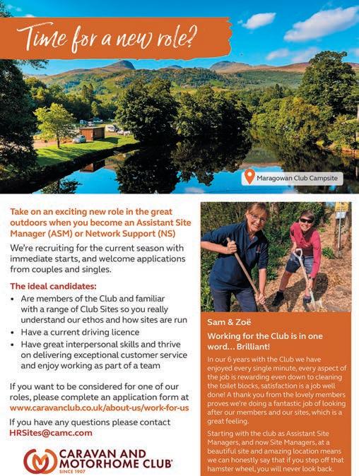 Readers are asked to note that the Caravan and Motorhome Club cannot accept responsibility for the quality, safe delivery or operation of any products advertised or mentioned in this journal. Acceptance of advertisements does not imply any form of approval or recommendation. Advertisements or other inserted material are accepted subject to the approval of the publishers and their current terms and conditions.