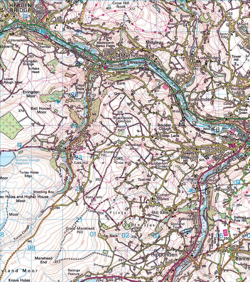 17.7km – turn left here to reach another T-junction almost immediately. Turn right and, in 100m, turn left by the Church Stile Inn along Pinfold Lane. Stay on this road for almost 5km, where it eventually becomes a steep descent into Mytholmroyd, to reach a T-junction.