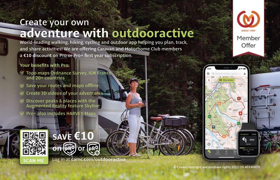 basic questions – how do I prepare, how far should I go, what equipment shall I take, which shoe is best for me? – while including four exhilarating routes, each of which starts at the front door of a Club campsite. By scanning the QR code at the end of each walk description you can access a map and more via the Outdooractive website and app. (Outdooractive’s basic service is free to use – but we have a member offer on first-year subscriptions to the Pro and Pro+ versions). This issue also includes