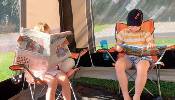 Thanks to Cathy Thompson for this photo of her grandchildren at Meathop Fell Club Campsite in the Lake District. This was Cathy’s first trip with her grandchildren and first trip with the awning. It looks like they have settled in for a long afternoon reading session, Cathy.