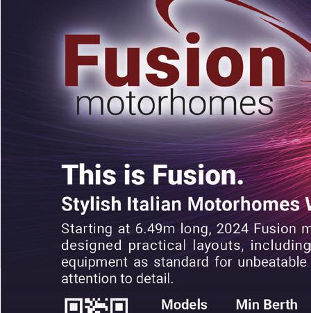 WWW.COACHMAN.CO.UK *Recommended retail price (incl. VAT). Price excludes delivery charge (£650 incl. VAT). Price correct at time of going to press. WhatsApp: 07940 585401 Scan me THE EXCEPTIONAL 2024 CARAVAN COLLECTION Five luxurious caravan ranges from £30,850* VIP 675
