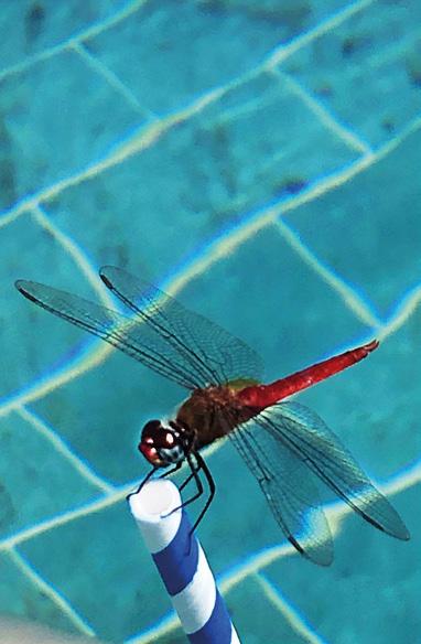 Alyson Veryard shared several interesting pictures of insects with us, but this cheeky dragonfly caught our eye – a poolside pilferer hunting for refreshment on the island of Grenada in the Caribbean.